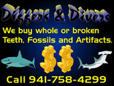 Attention all diggers and divers!!! We buy fossil Shark Teeth...Sharky's Shop is currently seeking large quantities of Teeth. No amount to small. Please call for pricing information (941-758-4299) or E-mail Eric@SharkysShop.com. We look forward to hearing from all of you. Keep up all the great work out in the field.
