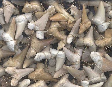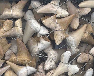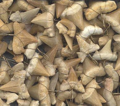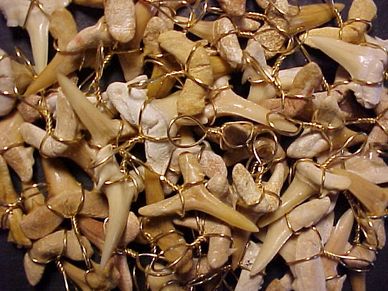 Here is a sample of the Moroccan fossilized shark teeth we offer here at Sharky's Shop. As you can see, these teeth are beautiful. Teeth range in size from 3/4" to 1-1/2" in our large mix. All Moroccan teeth are pre-hardened prior to wire wrapping. Purchase Online with PayPal...