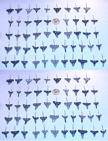 For quantity orders, tooth species (shape) will vary within each necklace style. Standard Bone Valley teeth species are Bull, Lemon, Dusky and Sand Tiger.